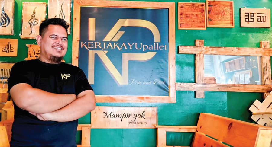TELUK INTAN: Kayu palet yang terbuang menjadi sumber rezeki kepada Amar Tasykin Mohd. Basari, 37, apabila ia dijadikan perabot dan barangan kraftangan berkualiti tinggi.