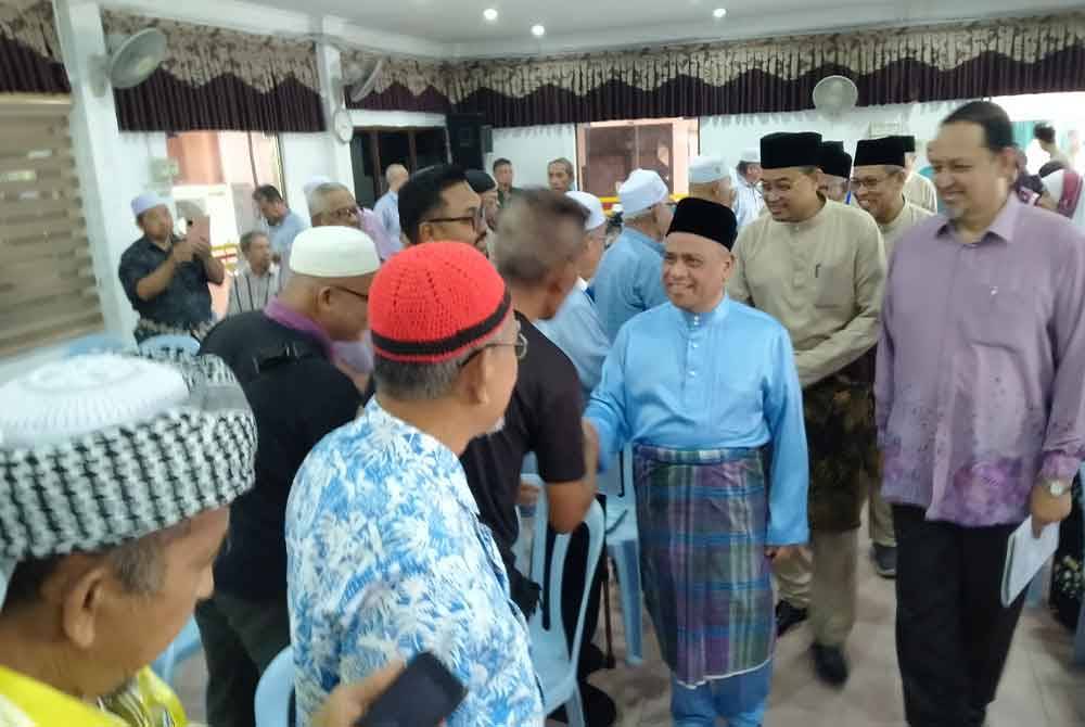 Saarani (dua dari kanan) bersalaman dengan ahli-ahli Komas yang hadir sempena Mesyuarat Agung Tahunan Koperasi Masjid Perak Berhad (Komas) Kali ke-27 di Dewan Tun Abdul Razak, Persekutuan Seruan Islam Perak di sini pada Ahad.