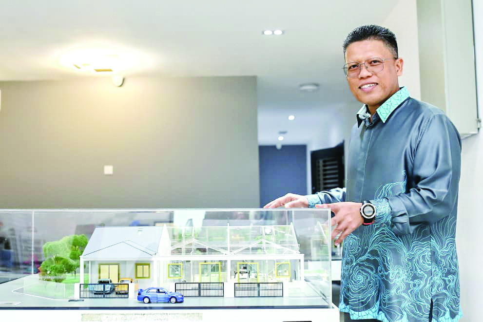 MOHAMED AKMAL menunjukkan model rumah mampu milik di pejabat LPHP, Meru, Ipoh semalam.