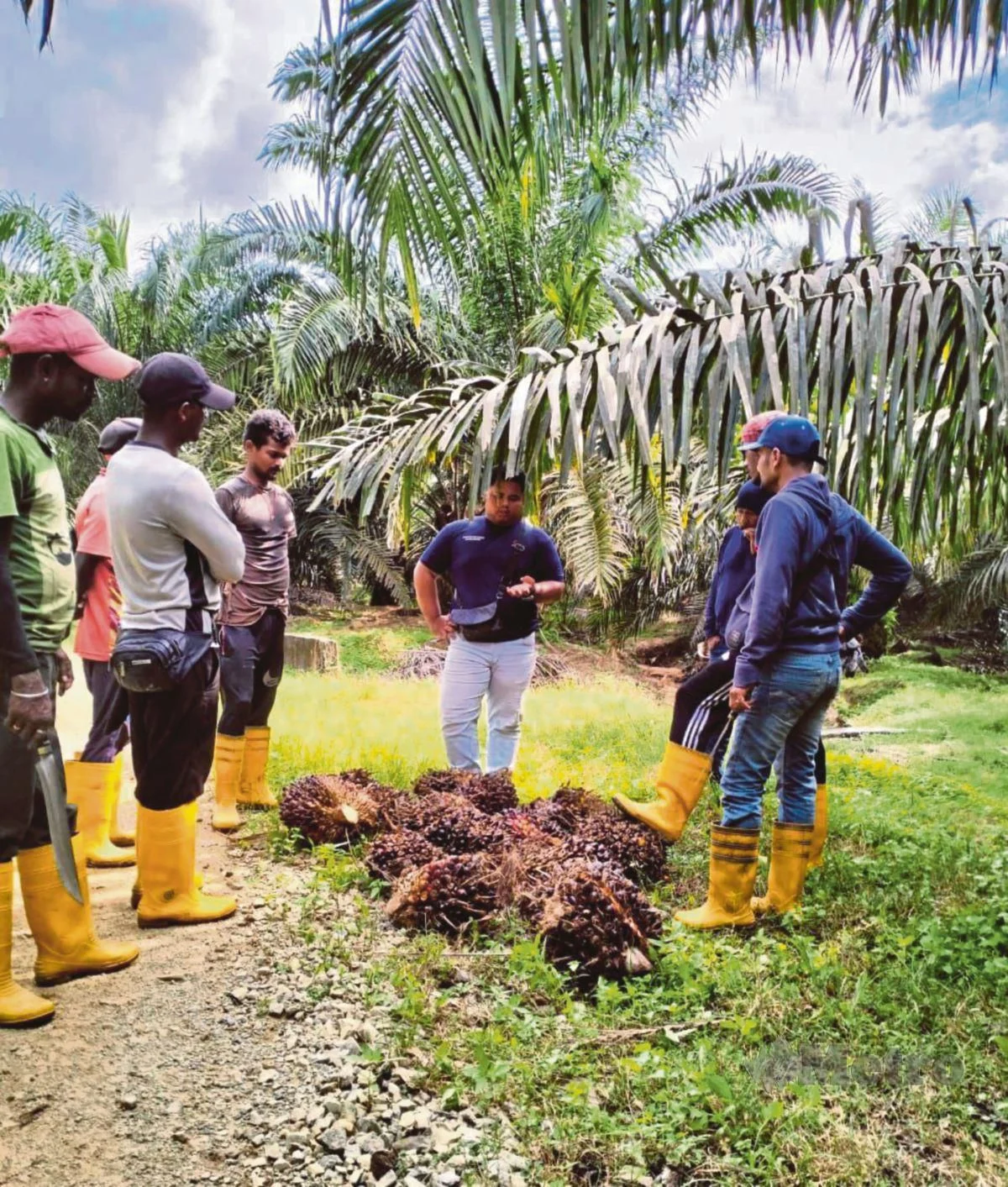 MUHAMAD Harith Azizi (tengah) bertugas sebagai Penolong Pengurus Ladang Felcra Kawasan Lakai, di Jelebu.